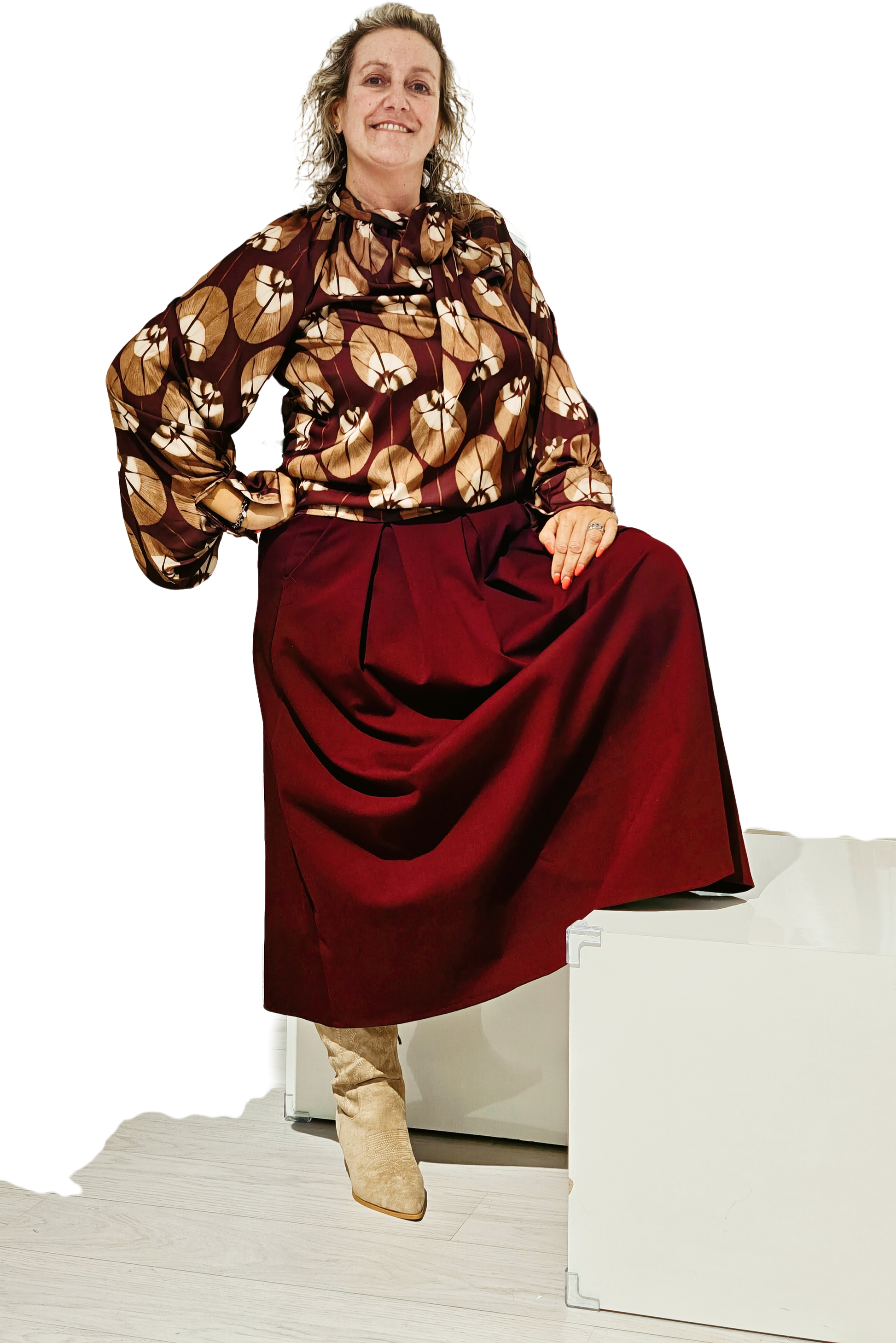 Un abito che parla di eleganza senza tempo. Realizzato in un tessuto di pregio, questo vestito lungo Bordeaux sfoggia una linea a A che parte dalla vita alta, regalando una vestibilità comoda e lusinghiera per ogni tipo di corpo. L'elemento distintivo è l'ampia cintura in pelle color camoscio, che non solo definisce la vita e migliora le proporzioni, ma aggiunge anche un tocco di raffinatezza e carattere. La lunghezza alla caviglia e l'ampia gonna svasata evocano un'eleganza retro sofisticata, rendendolo perfetto per matrimoni, cerimonie, cene importanti o occasioni in cui desideri fare una bellissima figura.